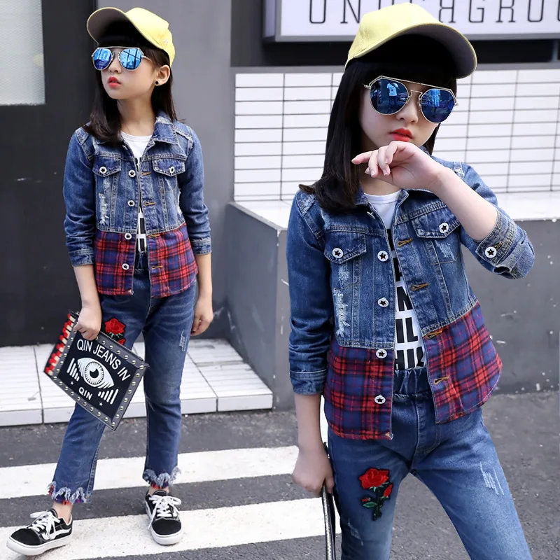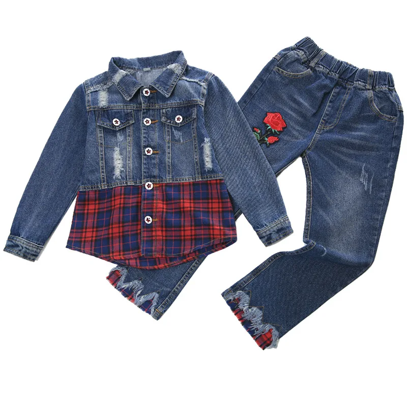 Buy Children's wear cowboy suits spring and Autumn Festival 2020 new baby girl clothes jean sets plaid Right Here and Right Now Just for USD US $23.92, Price will be rise up at any time without notification and I cant guaranted that the stock is still available tommorow or next hour. So Please Save It Now!