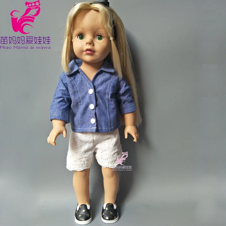 0 Response to " Doll clothes for 43cm baby doll Jeans clothes short pants set for 18 inch dolls suit for doll girls"